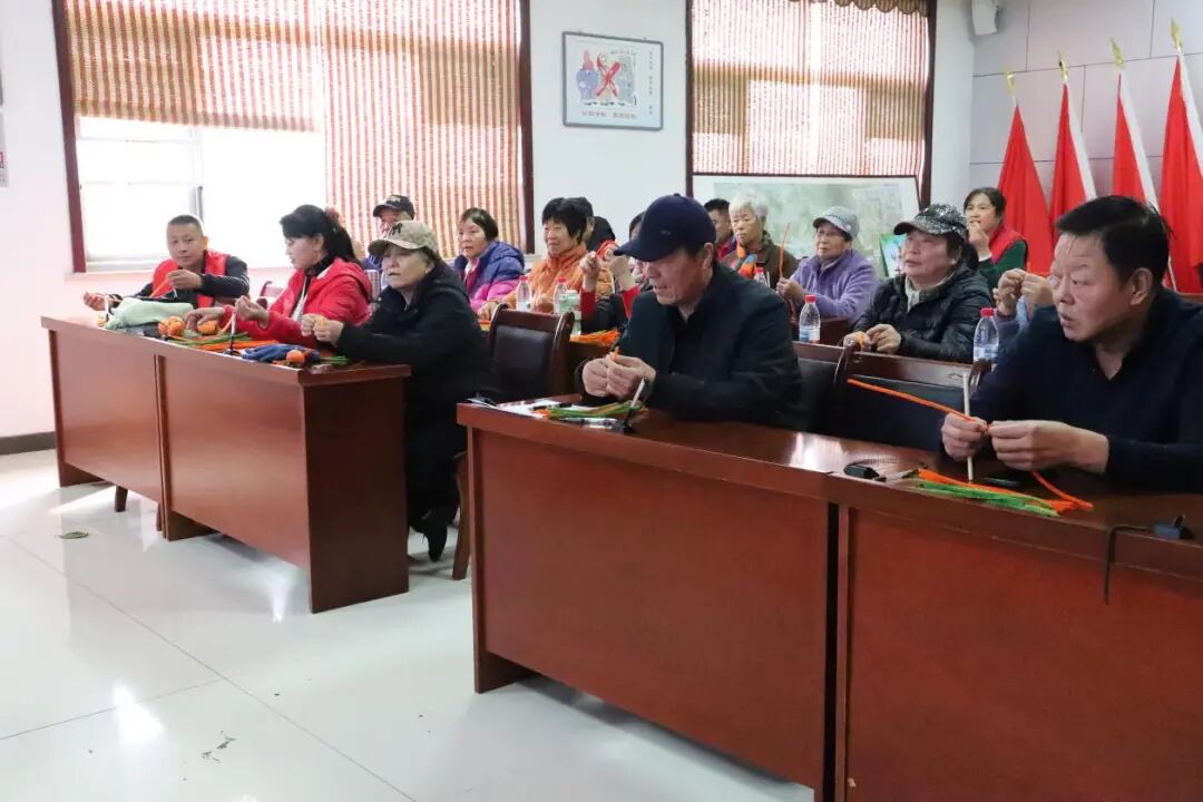 在布置拍摄场地的同时,社工先带领长者们进行“柿柿如意”的手工柿子制作。社工耐心地为每位长者分发材料,逐步讲解制作步骤。长者们认真聆听,积极动手,互相交流制作心得,不时传来欢声笑语。“小时候哪有机会做这些,没想到老了还能体验上了”一位长者的感慨引起大家的共鸣。