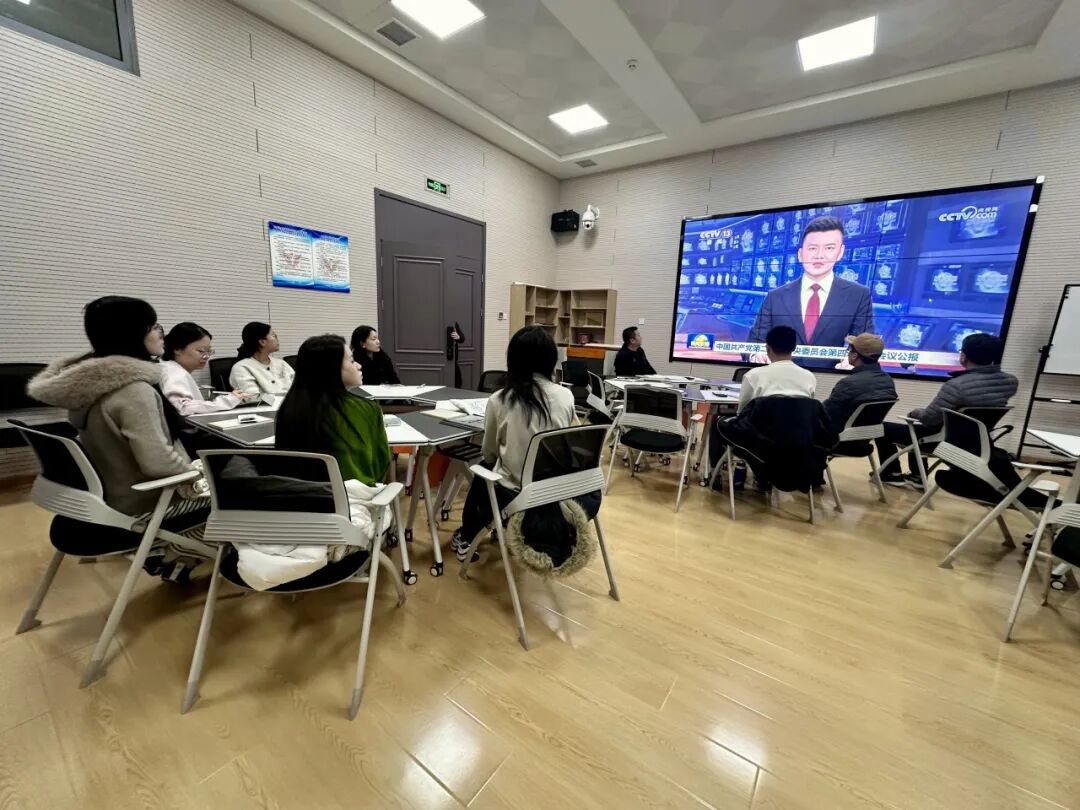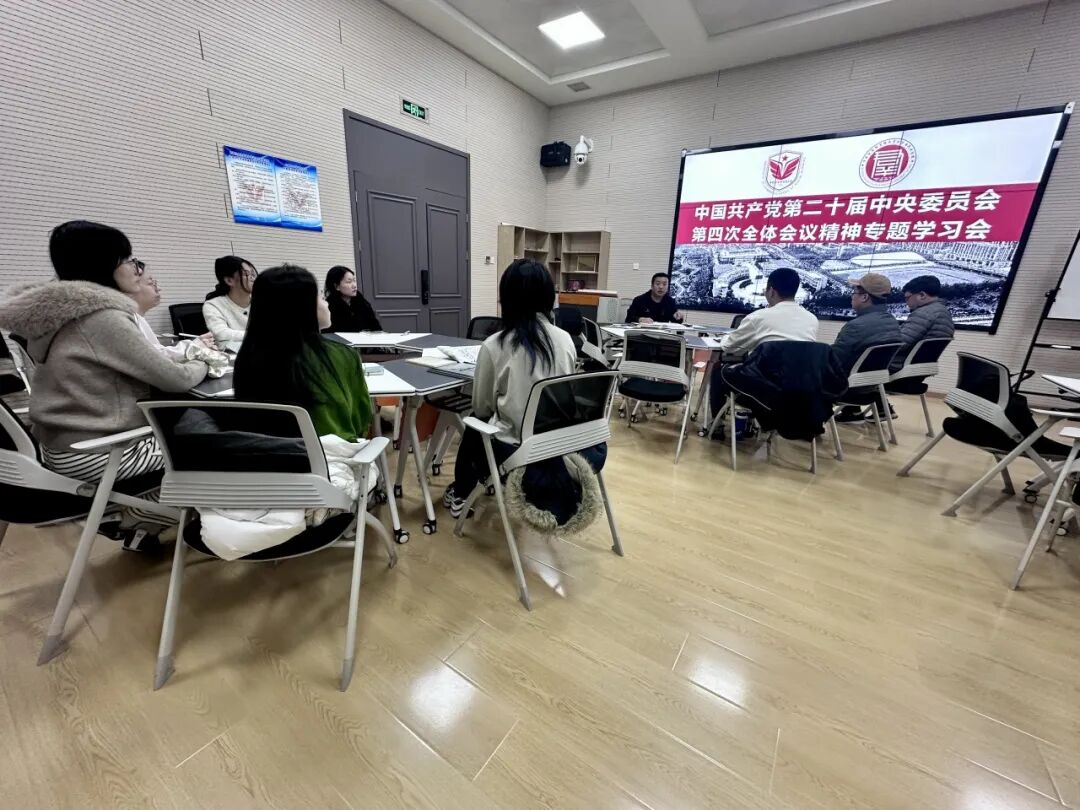 会上,大家一起集体观看了新闻联播关于《中国共产党第二十届中央委员会第四次全体会议公报》的视频内容,就党的二十届四中全会精神进行了学习。张超老师在学习时强调,深入学习领会全会精神,是当前和今后一个时期的重要政治任务,各党支部必须高度重视,先学一步,学深一层,切实结合本支部实际情况,将此项学习纳入“三会一课”、主题党日等组织生活之中,确保学习覆盖到位、理解深入透彻,引导全体青年党员统一思想、提高站位,不断增强政治判断力、政治领悟力、政治执行力。