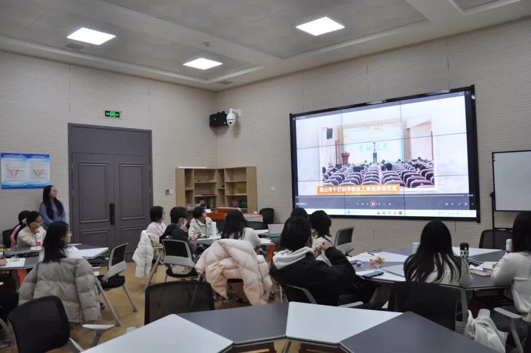 在主题观影环节,本次选取了两部具有代表性的社工题材纪录片。《昆山学校社工时光切片微纪录片》生动展现了学校社工如何与德育工作深度融合及社工在学校场域中的专业角色与工作方法。随后播放的《社矫风云·新生》作为深圳市首部社区矫正主题微电影,讲述社区矫正对象张新在吴社工的持续陪伴与专业介入下,逐步走出人生低谷、重塑自我并重返社会的故事。两部作品分别从学校社会工作、矫正社会工作这两个领域展现了社会工作的专业价值,为同学们理解社会工作实践提供了具体参照。