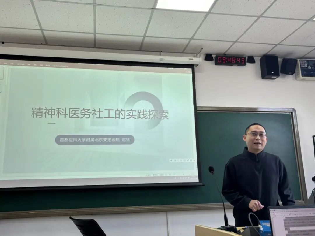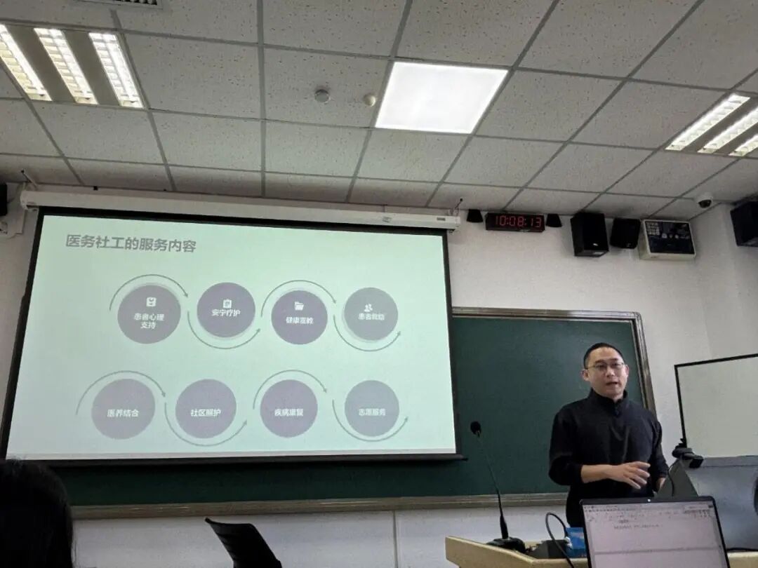 期间,赵猛主任还补充讲解了《精神卫生法》,通过三个生动的案例,与同学们共同探讨医务社会工作者在实际工作中如何妥善处理相关问题。他还分享了当前医务社会工作面临的挑战以及未来的发展趋势。