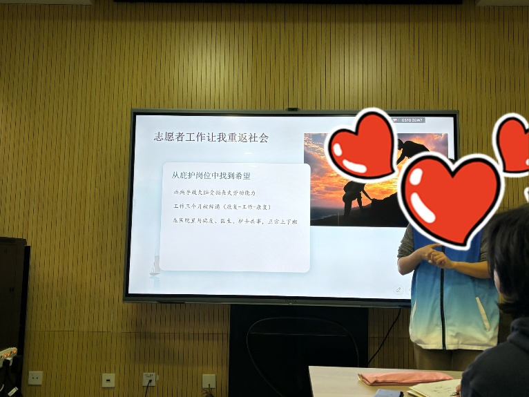 在护士长详解志愿者项目管理模式后,两位 “彩虹志愿者” 分享了自己的康复经历,让同学们真切读懂了志愿者工作作为 “精神康复最后一公里” 的深刻意义。